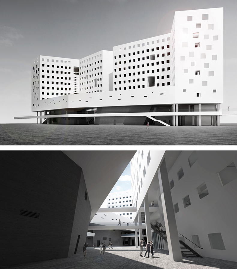 ▲深圳大学南校区设计教学楼 透视及内庭院效果图