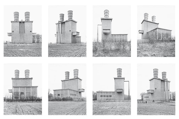 如果说单幅摄影作品还不能表现贝歇夫妇摄影的震撼力,那么对相似摄影对象的收集、整理、并置则让他们的作品呈现出某种形式上的美感。这些基于相同摄影规则下拍摄的单幅照片通过类型的分类被并置在一起,呈现出了形式上的连续性。贝歇夫妇通过对这些即相似又不同的工业建筑类型的分类,使得原本无名的建筑开始具备了风格特征。