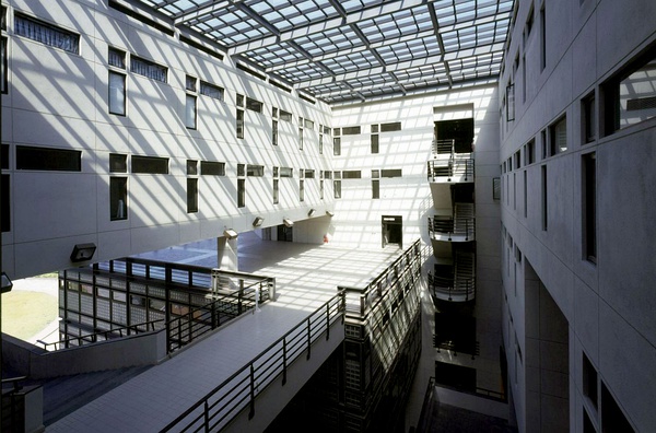 这栋建筑就像是一座超级大电脑,是一个社会网络平台,人在里头可以自由地穿梭活动,因此,这个空间也必须是机动的、可以自由流动的空间。由此,杨家凯对于公共空间的琢磨相当重视,他增宽走廊的通道,也特別预留广场空间,他说“走廊不是过道,未来也是学生可以在此学习交流,因为中庭未来会架设LED电视墙,可以播放教学影片;而半开放空间的广场,也可以作为学生团体活动、跳街舞、或是摇滚乐团表演的地方。”