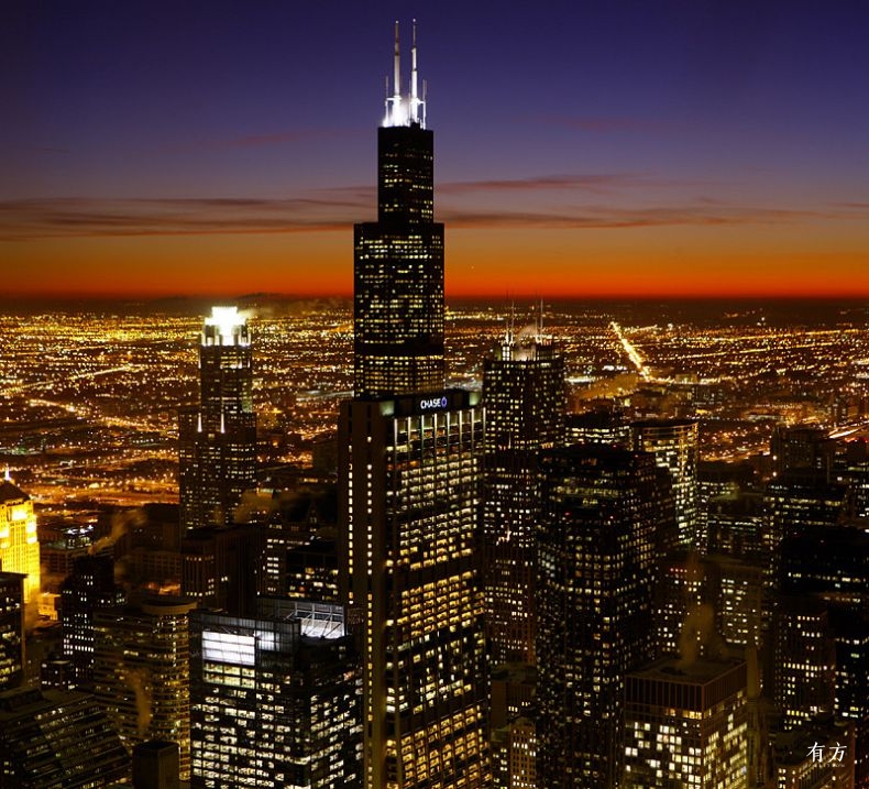 像芝加哥这样人口密度越来越大的城市,频繁建造高楼可能不止为了创造世界之最,而是为当地人争取一隅舒适的生活和工作空间。虽繁华,处闹市之中也容纳了赖特和密斯的宁静之作。虽高楼林立,直指天穹的一团烈焰不是怨愤吵闹、拥挤,而是风城人们对生活的热情。