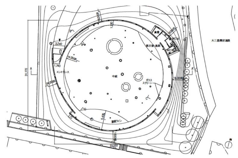三片分段的弧形墙面在挑板部分形成了环状的连续,由此在结构上形成了类似于圈梁一般的整体性,弧形墙面不仅具有围合及形成环游观赏路线的效果,同时也兼具有了竖向与抗侧的双重效应。白色的墙面与绿色的草坪烘托出岩田作品的存在感。而伊东丰雄所一直坚持的建筑与环境的连续性在这里也获得充分的展现。
