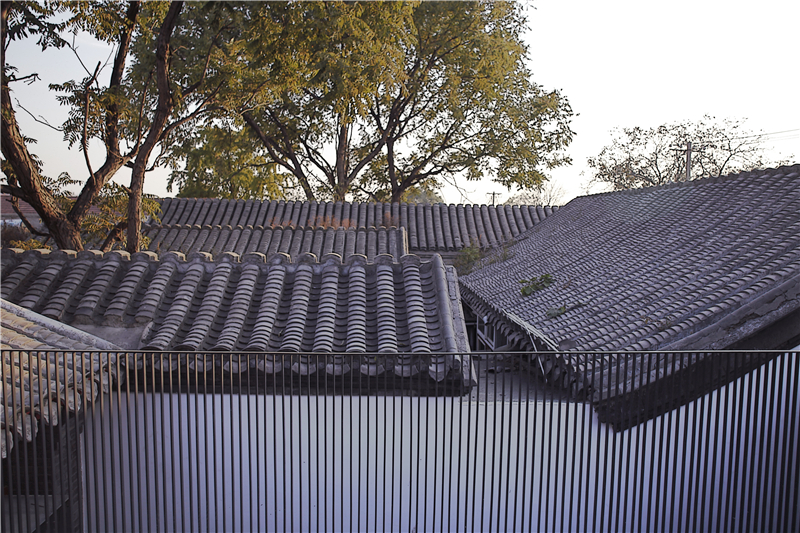 8号院将原有面向小院直接开门的多个小屋拆除,再设计、整合为一个多功能空间,并使它和东西两个原有房间紧密相连。新建部分为一个与传统合院建筑不同的“方盒子”,它的植入既扩大了庭院面积,使其更完整;又创造了一个空中庭院,为住户提供了一个可站在高处欣赏传统胡同街坊的场所。