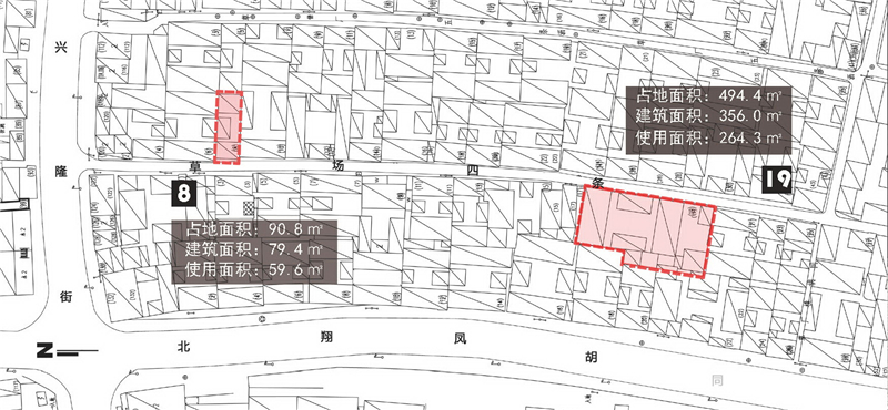 近几年,胡越工作室关注城市中普通建筑的状况以及改善的途径。前门草场四条8号院和19号院改造工程,正是目前前门成片保护区的典型案例。此前院子已被改造过,但仍然保留着一些重要的原始信息:居住功能、传统四合院的形式、杂院的使用状态以及由此带来的生活不便。其改造目标仍然是供普通市民居住的杂院住宅。
