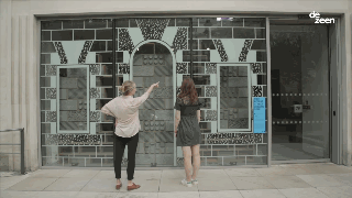装置最后采用了华丽雕刻而成的砖块,摆放在白色的乙烯基背后,展示出基地原有建筑窗户的模样。
