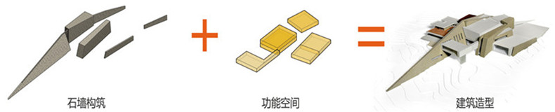 具有原始肌理的墙体和纯净的展厅相叠加构成建筑的雏形,经过功能、动线与美感等诸多因素间的反复协调推敲,建筑的造型最终确定。建筑的辅助功能如楼梯、卫生间等全部隐藏于浑厚的“墙体”中,在确保所有展厅空间高纯净度的同时,又使建筑造型的层次变得丰满。