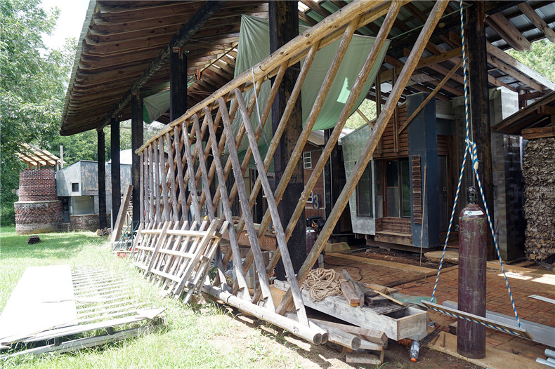 慢慢地,乡村工作室以低造价的方式,在黑尔县建造了大量独特的建筑。在Mason’s Bend社区和Newbe、Sawyerville、Greensboro、Thomaston、Akron等城镇中,工作室置入了简单,但是有创造性的结构,它们由廉价的、大部分是抢救或捐赠得到的材料制成,比如破旧的铁路枕木、旧砖块、捐赠的木材、干草捆、成捆的瓦楞纸板、被磨薄的橡胶轮胎、车牌和路标等。设计采用的是现代的美学语汇,但是其建筑拥有的防护性的屋顶和宽敞的门廊、像棚屋一样的形式和奇特的即兴发挥之处,又让它们看起来跟当地的住宅无异。