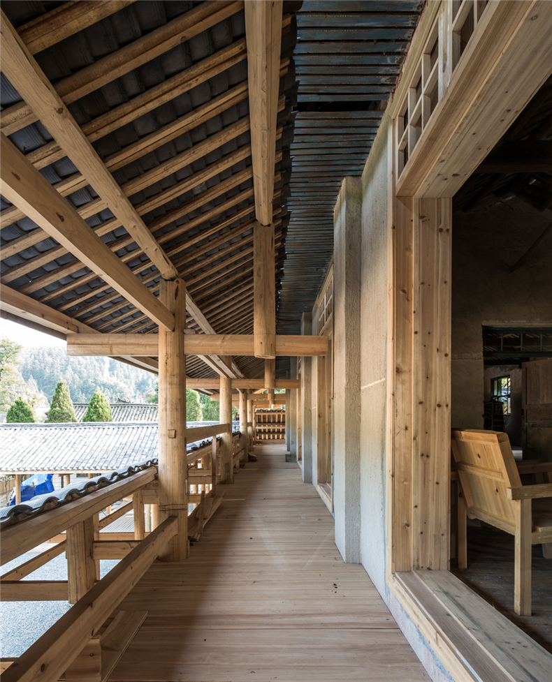 大部分原有建筑和原始材料被保留和再利用。而新建结构、门窗等材料均采用当地穿斗式木结构形式、聘用当地工人、使用当地传统建造技艺。屋面的设计上有诸多不同于传统制式的尝试,但因穿斗式梁架的高度灵活性,都得以顺利实施。