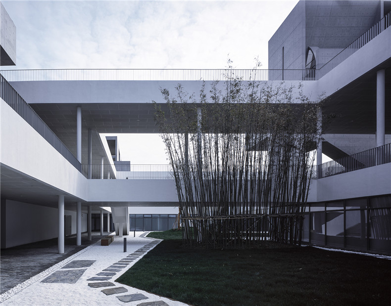 材料: 清水混凝土、白色肌理涂料、竹钢、玻璃幕墙