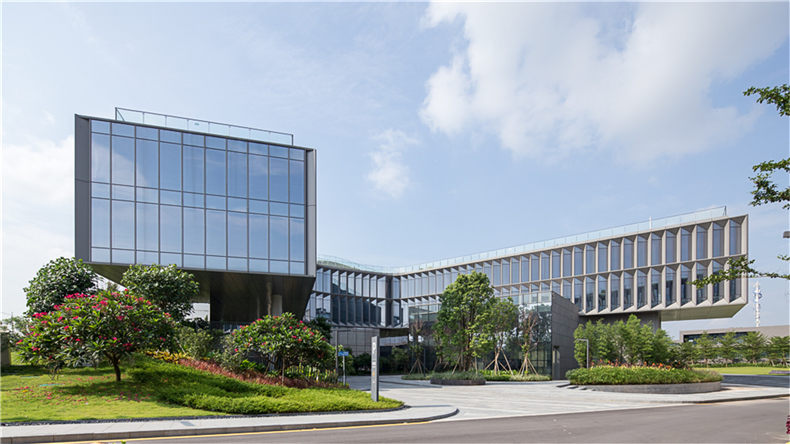 中集集装箱总部位于东莞市松山湖片区,西侧紧临松山湖及公共绿地,自然环境和建筑的融合渗透成为设计考虑的重点。