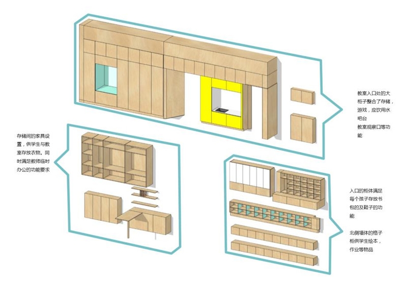 多定义公共轴不仅仅是联系空间,也是孩子们的游乐天地,设计师在此设置了许多游乐小品。