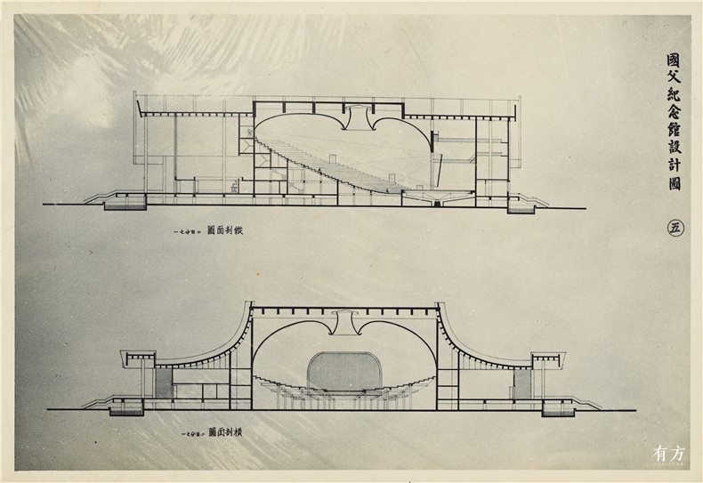 另外可以拿来与国父纪念馆延伸做对比的,应是1961年的台北故宫博物院竞图方案。这个提案虽然得到了评审的首奖,却又因为整体的形式风格,在诠释上“过度”的现代化,无法与当局的威权与道统思维相呼应,最终还是遭到摒除的对待,并替换了另件“粗鄙走样的抄袭品”。这件事让王大闳更清楚地意识到自己所面对的,已然不只是建筑理念的单纯思辨,还夹杂了时代施加在意识型态上的枷锁,这对抗一定艰辛也必然漫长。