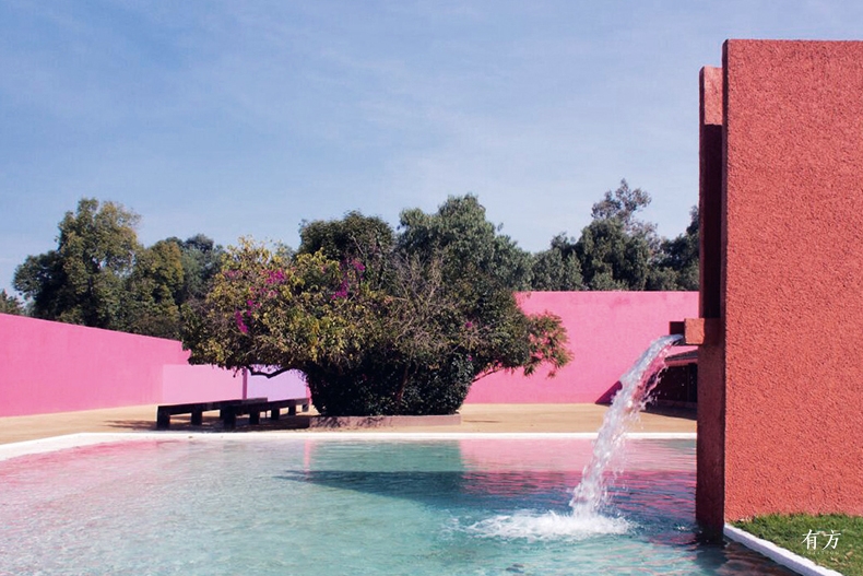他将内心的虔诚投射到具象的世界,这种宗教的神秘感就弥漫在每个作品当中。他作品中单面的墙来源于墨西哥当地特有的开敞式教堂,暗示着两个不同空间的界面。墙体同样表达了墨西哥建筑的内向型和厚重感,这种私密性为个体留下了独处和沉思的空间。水则代表了恬静和回忆:无论是缓慢溢出的水面,还是倾泻飞跃的喷泉都饱含神性。