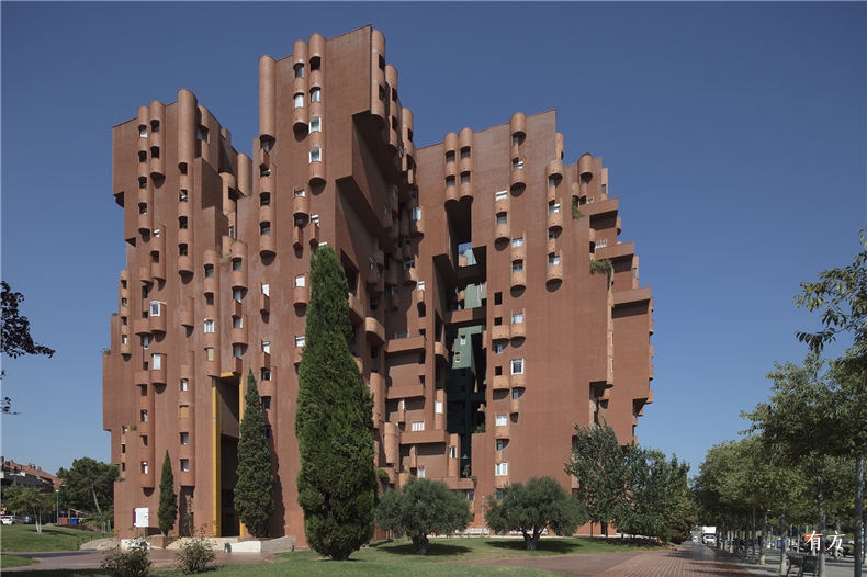 高天霞:这座魔幻建筑是波菲巅峰时期的作品,游戏纪念碑谷的原型据说来自瓦尔登7号和红墙这两座建筑。瓦尔登7号在正常的使用中,宋玮老师说,他在巴塞罗那读书期间屡次想在这里租房,但每次都满员,很难租到。据说波菲的前妻,以及他姐姐一家都还住在这里。 这座乌托邦式的建筑像童话一样真实的展现在我们眼前,我们分别参观了1层、10层、18层和顶层。来到顶层时,这里的住户在屋顶泳池游泳晒日光浴,十分有生活气息。