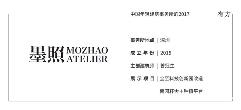 “2017,我们放慢了脚步,于前行中回顾过去的实践,从而坚定心中的理想与价值。全至科技创新园是一次探索。通过改造设计,重塑场所意义和营造自然与人文并存的环境。人的尺度、活动及情感是探索与思考的立足点。空间、材料和建造方式则是探索与思考的呈现。我们将在自信中前行,继续保持着踏实、乐观、进取、分享的态度。”