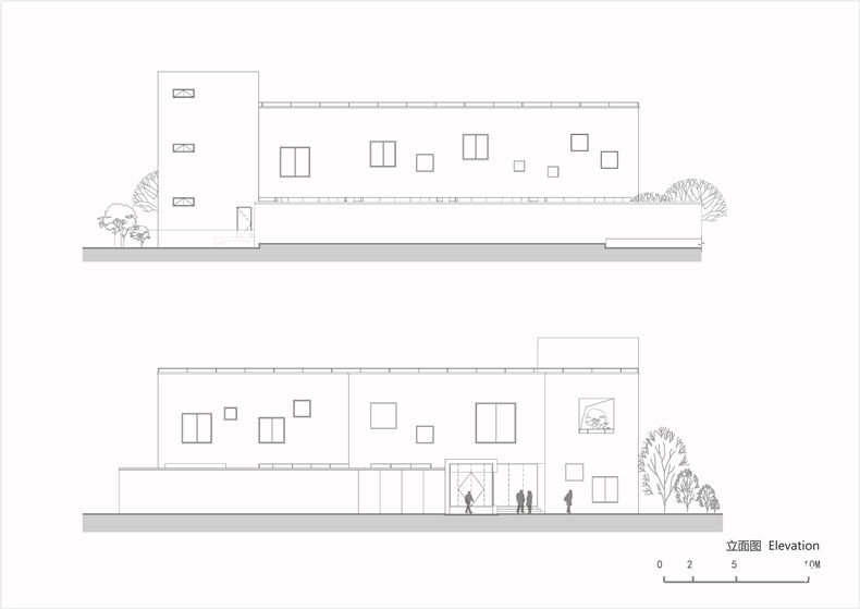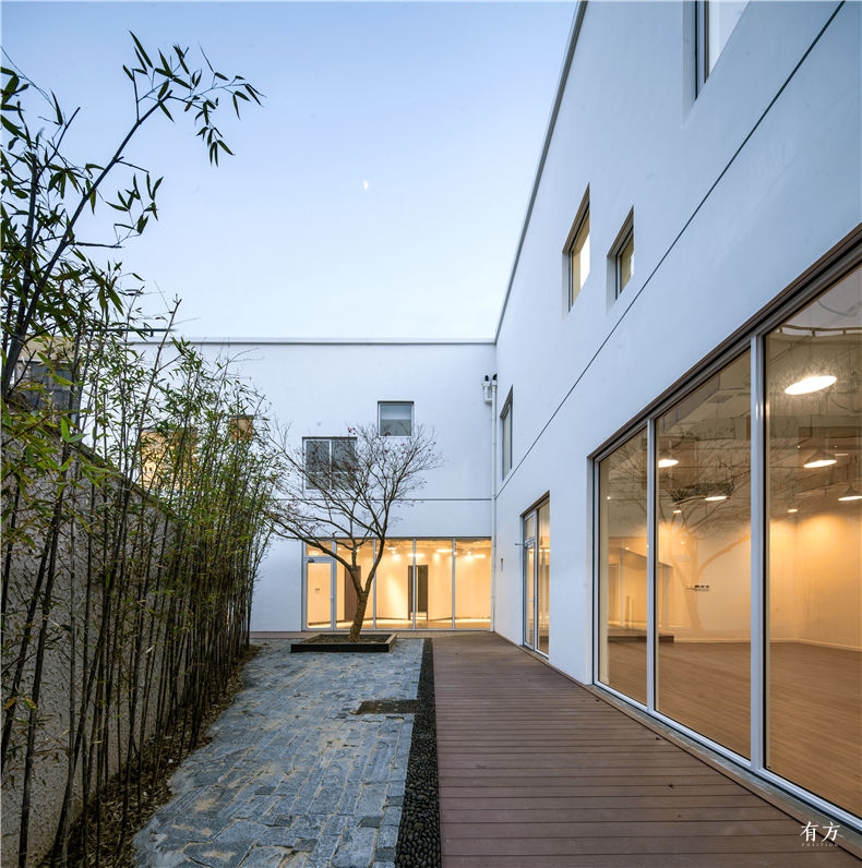 We hope to bring as much as possible courtyard views and greens to the interior, so we used a lot of floor-to-ceiling windows on the first floor of the façade. The height of the second floor has no protection of the wall, thus the window-opening cannot seem to be so willful. It is necessary to meet the indoor lighting, ventilation and landscape requirements, but also reduce the impact on the exteal environment. The level of the scattered, the size of the hole, as the main window form the second floor of the outer walls, like a frame, to capture the outdoor landscape, standing in the light and shadow of the room, like being in a collection landscape Art Museum in general. As the night approaches, the room is filled with warm light, revealing from the scattered window, the entire building was like magnificent like a light container.