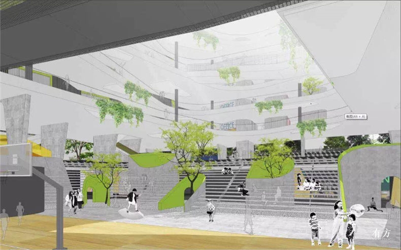“福田新校园行动计划”旨在针对深圳福田区集约土地、高密度的城市状况,通过设计管理体制创新,邀请优秀建筑师与教育界和社会各界密切合作,积极探讨高密度时代新学校建筑类型的建构与空间创新。该计划积极回应个性化、多样化的教育改革需求,力求将人本教育、开放教育、小班教学、终身学习、开放校园、绿色学校等精神贯彻到新校园设计中。为达成以上目标,“新校园计划”特倡导以下设计原则: