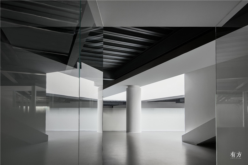 项目位于北京一处创意产业园区内,当我们进入这座原本通透的建筑中,其实就明白了,这里应该是简单而干净的。作为一处被要求成为聚会、发布会和艺术品展出的空间,它不该属于瞬间的艺术,而是需要在限定的范围内营造出让受众过目难忘、回味无穷的视觉效果。这里不该属于第一区面的界面空间,也不属于第二区面的精神与语言,这里更像是在不同时间、不同身份、不同故事交汇的第三区,而在“三区”打破的是: