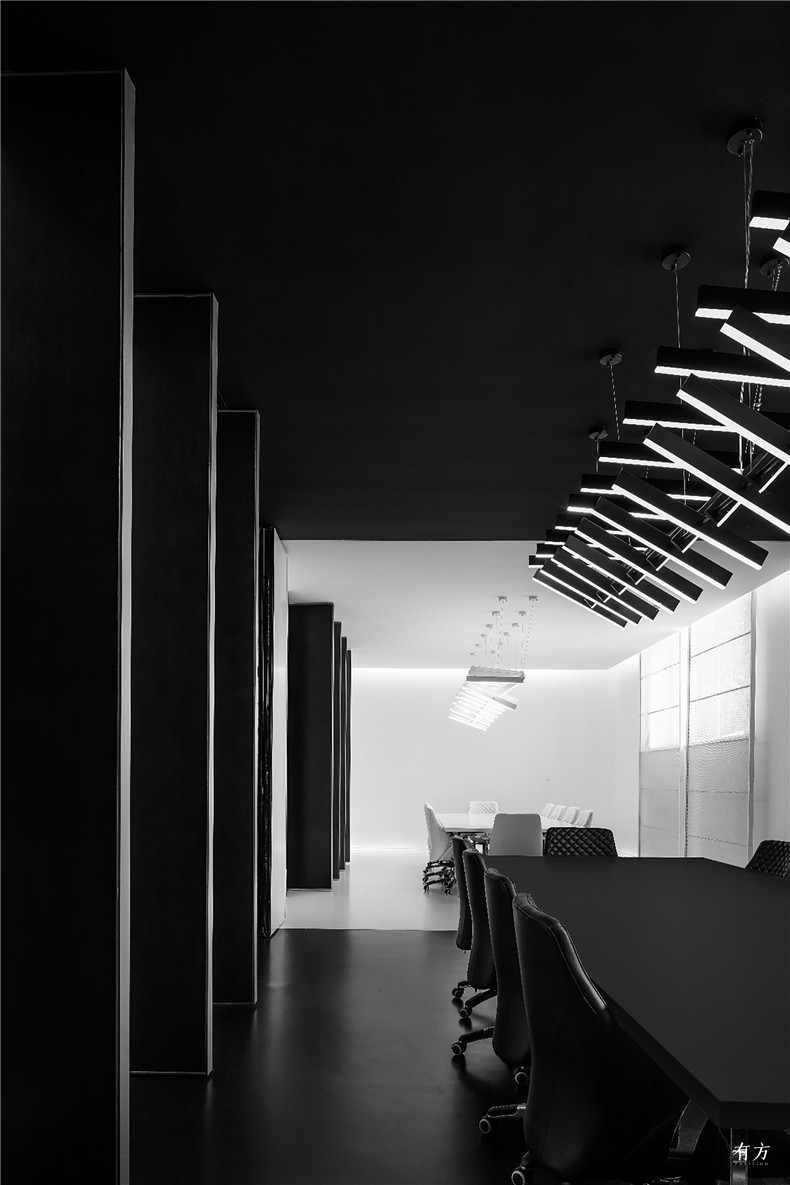 As our clients are three girls with distinctive characters, we divided the big meeting room into pure white and pure black to represent two different characters of them.