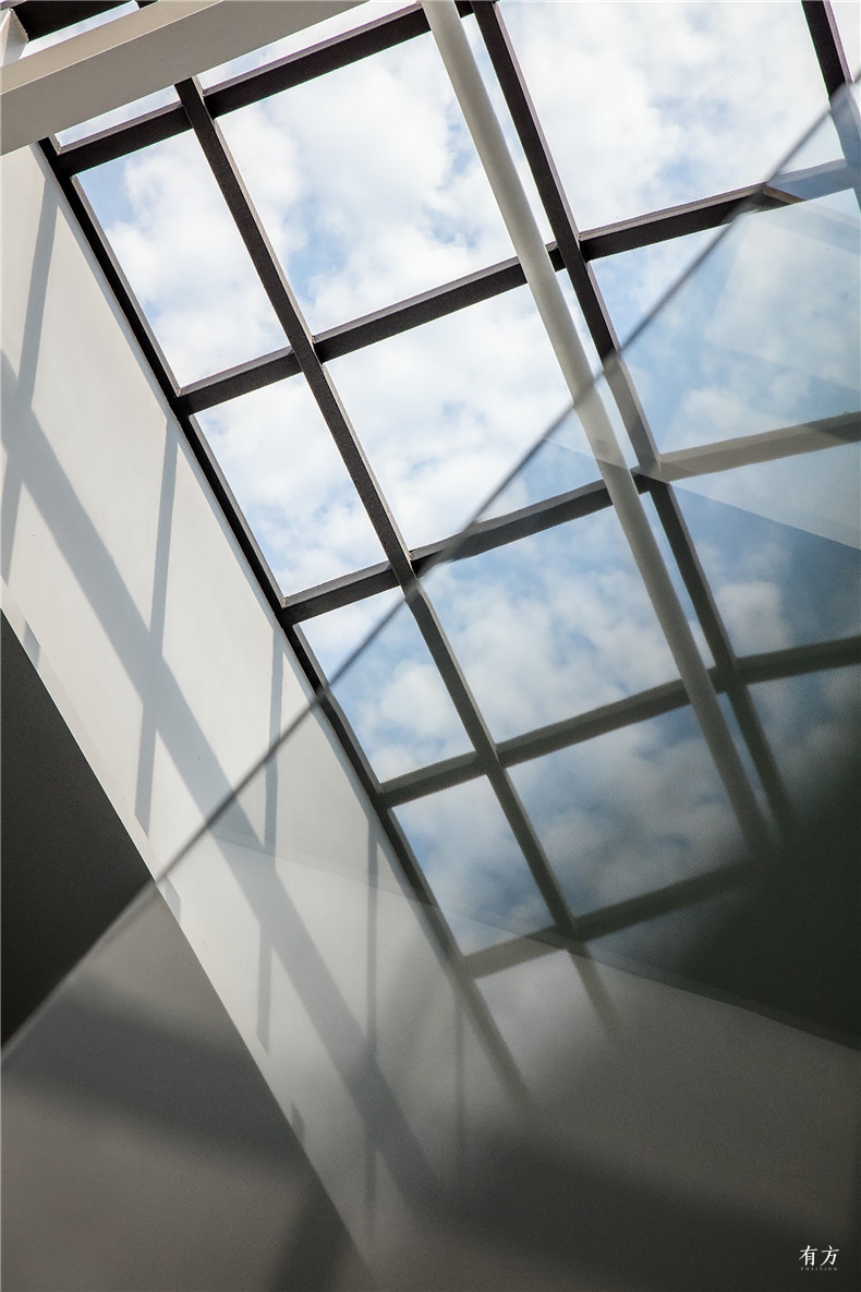 三区靠一个白色走廊贯穿了整个空间的每一层出口、入口、坡道与楼梯,就像一个神经中枢穿越时空:它时而进入通高的中庭,时而进入狭小半私密的开敞空间,同时又连接着楼层之间的流线转换。漫步式的体系不仅是交通的内核,更创造了一个丰富而富有身体节奏感的漫步秩序。融为一体的连廊则弱化了固化的空间感,形成活跃的交通聚集空间,诱导人们通过这些路径在不同的空间内交流与互动。