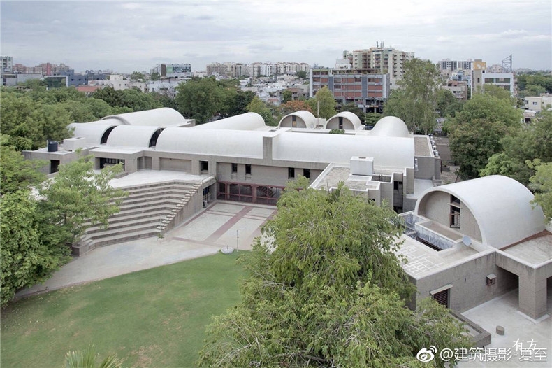 印度学研究所大楼是多西脱离勒·柯布西耶事务所后,作为独立建筑师设计的最早的公众建筑之一,是耆那教古代文稿和绘画珍品的收藏和研究机构。钢筋混凝土在这里既是建筑结构也是建筑表皮。多西结合了现代建筑的材料、技术以及传统建筑布局回应印度炎热的气候。