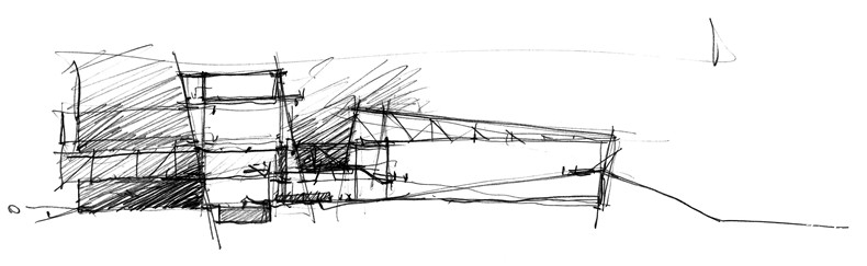 两个体块似乎是被建筑内部的动能举起而呈现出了一种漂浮的状态,从而显现了在此发生的活动(竞技、田径、训练)的动态性特征。