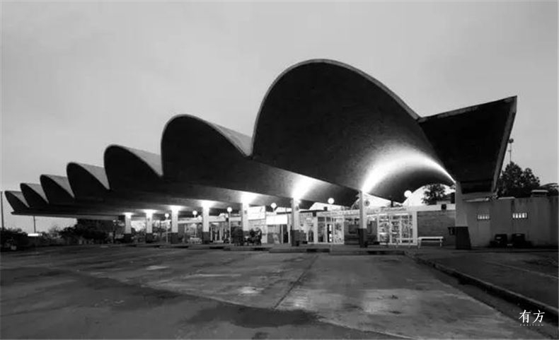 随着柏林新国家画廊、蓬皮杜中心的落成,建筑舞台的主角慢慢从混凝土的“粗野主义”变为属于钢的“高技派”。在大西洋对岸的乌拉圭,迪埃斯特仍执着于砖。跨度超过40米的砖结构壳体,覆盖了厂房、仓库、体育馆和商场。屋顶在纵向形成连续的“S”形壳体,横向则是一个个月牙形状的天窗。柔和的自然光透过天窗,映在优美的砖壳曲面上。公共汽车站悬挑十几米的屋顶,既能遮蔽风雨,又能满足车辆随心所欲地进出掉转。而奇迹中的奇迹,是这些砖结构的厚度只有不到200毫米。和被它呵护的巨大空间相比,结构轻薄如纸,却坚韧如钢,数十年后仍安然无恙。