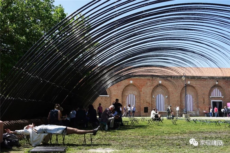 The theory of the "Bow-arch" structure is from the bow, which is also an extension of my work "With the Wind" at the 2015 Venice Biennale. "With the Wind" is an unstable installation that is composed by fishing rod and hanging sword. I want to express a "dangerous balance of one change that makes all changes", to echo the theme of 2015 Venice Biennale, which is "the Future of the World."