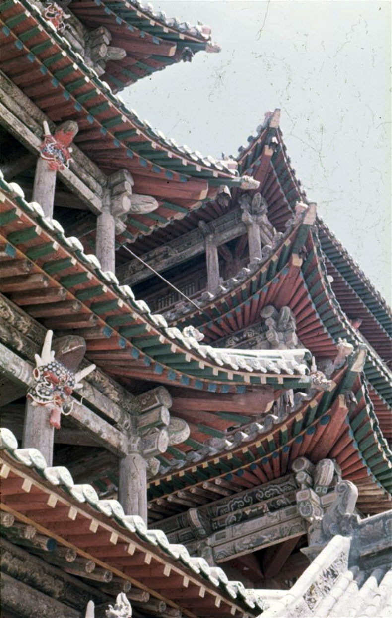 回溯这段历史,在1958年的春天,伍重展开了长达4个月的中国之旅。在北京,他亲眼所见了自己过往阅读里的北京历史建筑的风采,在梁思成的带领和解说下参观了北京故宫。不止于此,他还游览了长江三峡,前往了少林去看嵩山寺塔,骑骡前往大同去云冈石窟。