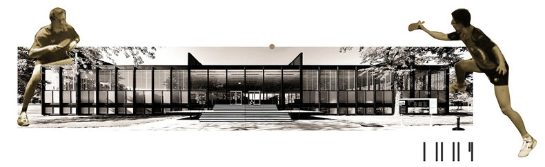 密斯留在伊利诺伊理工学院校园内的名作克朗楼,密斯本人这是最能代表自己哲学思想的作品,他曾使用“几乎无物”(almost nothing)来形容它。这栋有着洗练的细部和雅致的比例的建筑,所呈现出的匀称和澄静远远超乎于其所使用的工业材料的物质性。被打趣成一张乒乓球桌,似乎第一次见?