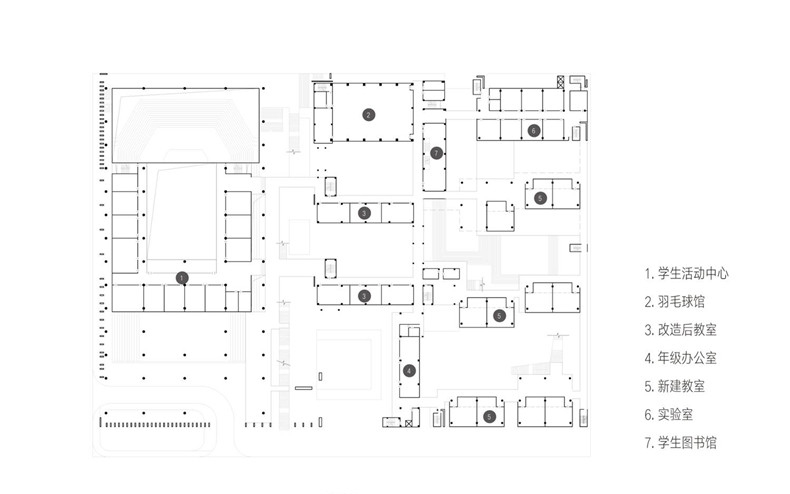 Under the process of rapid urbanization, the requirement of education increases significantly while school land is insufficient. The mission statement requires designers to expand the existing 19,000㎡ building area to 50,000㎡ in a 30020㎡ site space to accommodate 60 classes and 3,000 academic degrees (30 classes are currently available). Moreover, When transform and expand of both ends of the school, the middle part retains. Thus,if we cannot handle site relationships well and connect the two ends, it will lead to a gap between the reserved middle part and the division of the integrity of the school.