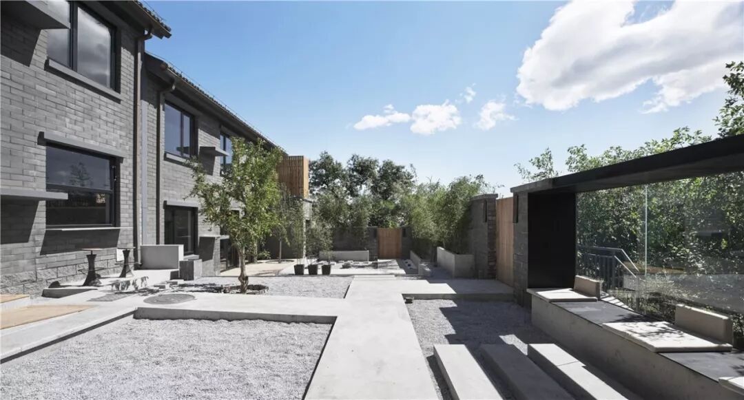 虽然项目距离北京城区只有近40分钟的车程,但是现场已经完全置身于山林之间。谜舍希望使用洗练的设计语言处理空间与自然的关系,将自然景致引入庭院和室内。