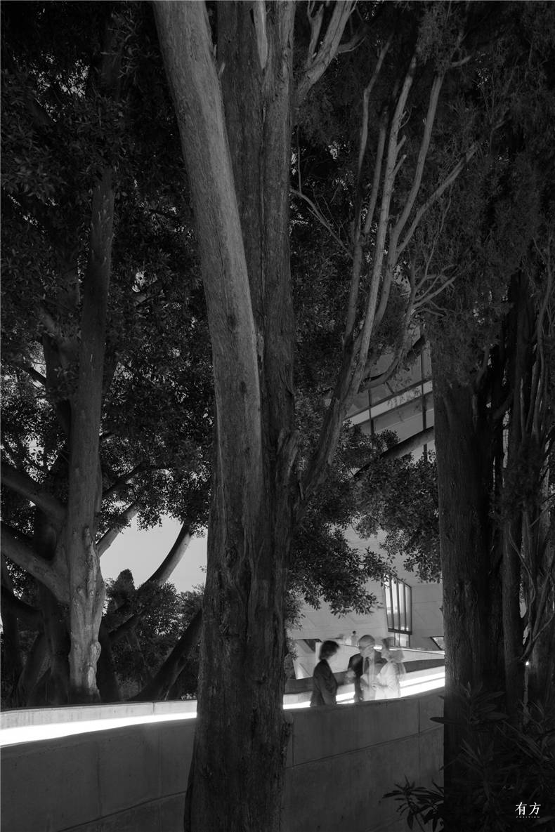 IFI的设计在Central Oval、校区中央的森林区域以及更远处的海洋之间的建立了新的联系。 IFI基地上现有的榕树和柏树(年龄在120至180岁之间)被融入了建筑设计之中。建筑始于交错道路所呈现的几何形状,它为研究、互动和讨论等活动提供一系列相互交叉的平台和空间。